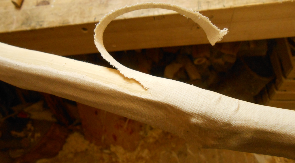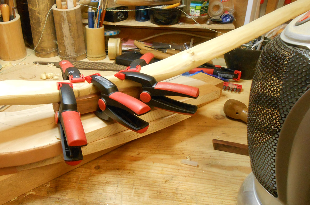 Den Riss habe ich am Dienstag abend noch mit Endfest behandelt und gestern habe ich dem Bogen ein Leinenbacking verpasst. Gearbeitet habe ich nach Selfbowers Videoanleitung.