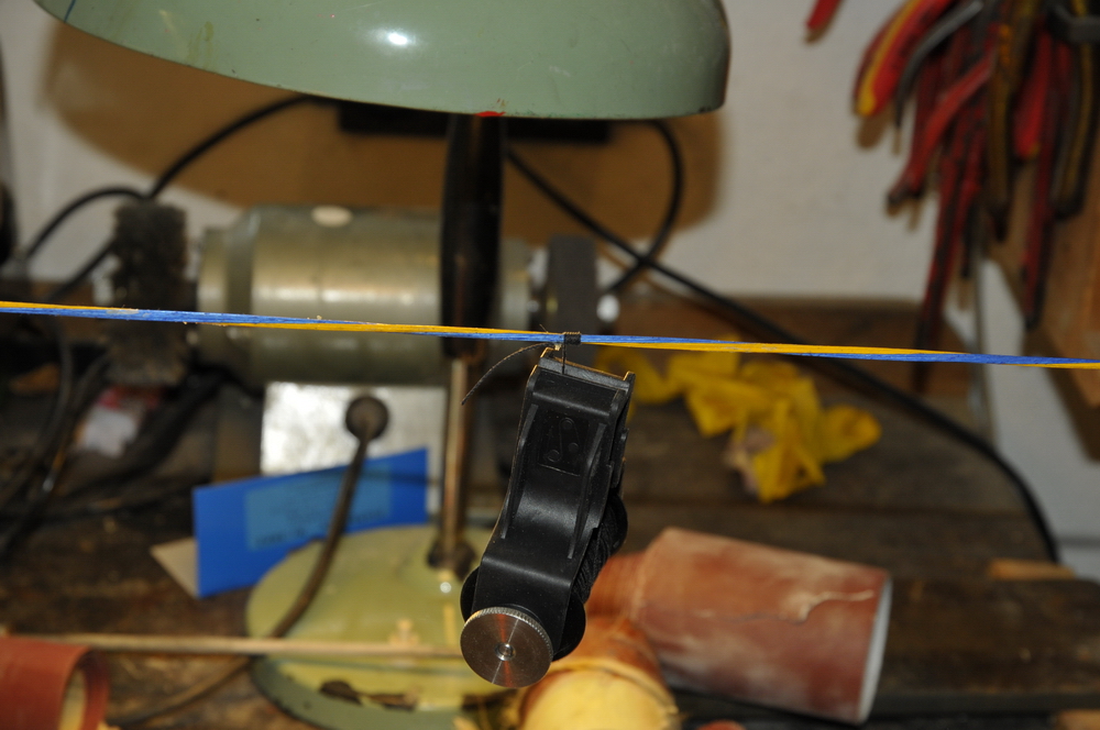 Dacron B55 12 Stränge - zweifabrig in den Landesfarben, ein Ohr flämischer Spleiss und am anderen Ende ein Bogenbauerknoten. Damit ist für mich der Bewerb zu Ende - aus 4 Stücken ist ein Bogen fertig geworden. Weissdorn und Pfaffenhüttchen sind leider gebrochen. Ein Hollerstave ist übriggeblieben - ist schön gerade, hat sich überhaupt nicht verzogen.