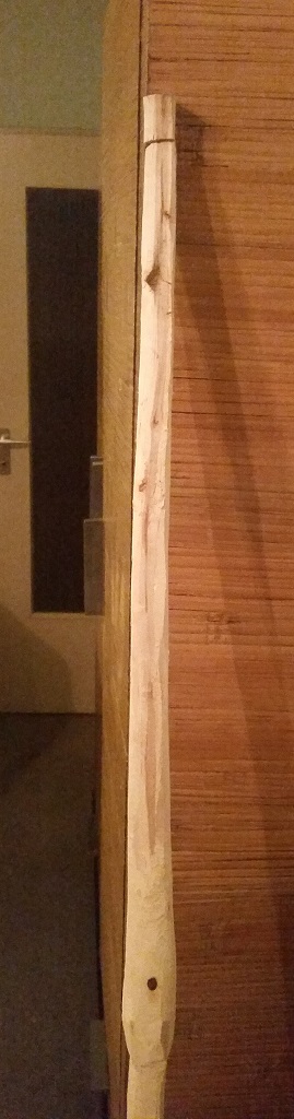 Der Stave ist jetzt nach dem ersten einkürzen noch 175cm lang und hat, geschätzt, jeweils 7,5° - 10° Reflex zu den Wurfarmenden hin.