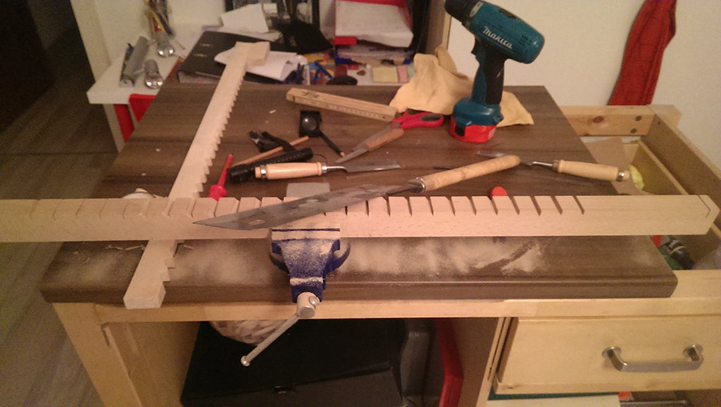 Die sehne habe ich mir vorgenommen selbst herzustellen, zunächst zum tillern und anschließend als bogensehne dran lassen.