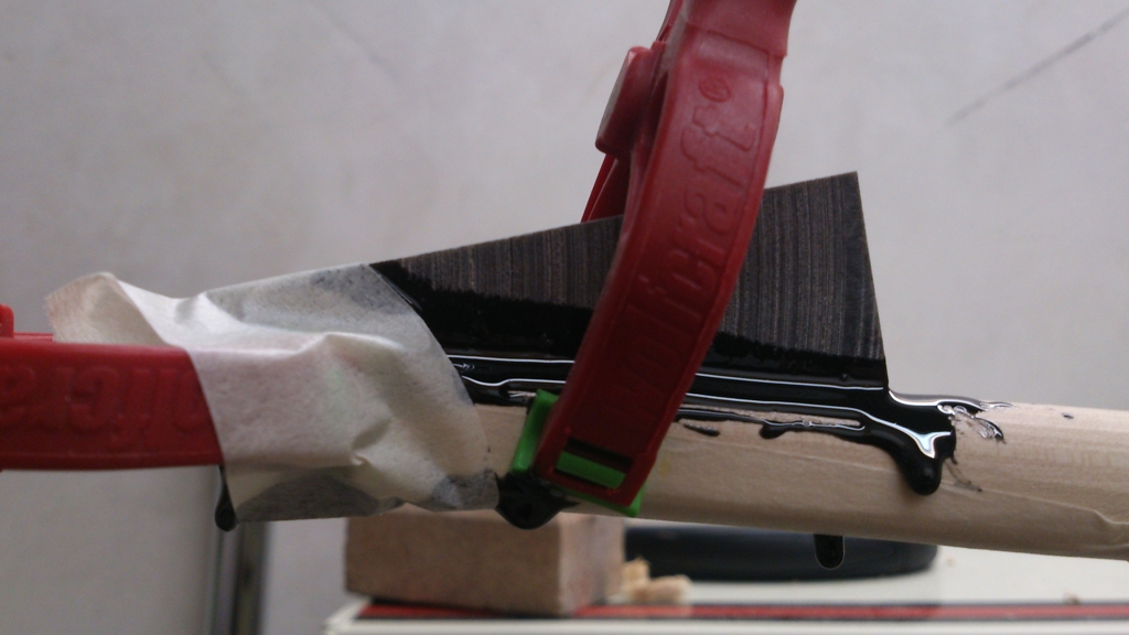 Naja, iss ja net alles irgendwo abgekupfert, obwohl es sicher schon tausendfach so gemacht wurde. Aber ganz im Ernst: Was bei nem Pfeil, der mit 150# abgeschossen wird funktioniert, funktioniert auch bei nem Bogen - da iss die Idee hergekommen. Wichtig war mir aber, dass das Horn schräg eingeklebt ist. Am Ende iss unheimlich viel Druck und mir hats schon lange Overlays Richtung Bogenmitte abgehebelt. Deswegen dachte ich mir, dass ich durch das schräge einkleben den Druck besser verteile ohne dass es das Horn nach Oben rausdrückt. Iss echt blöd zu erklären