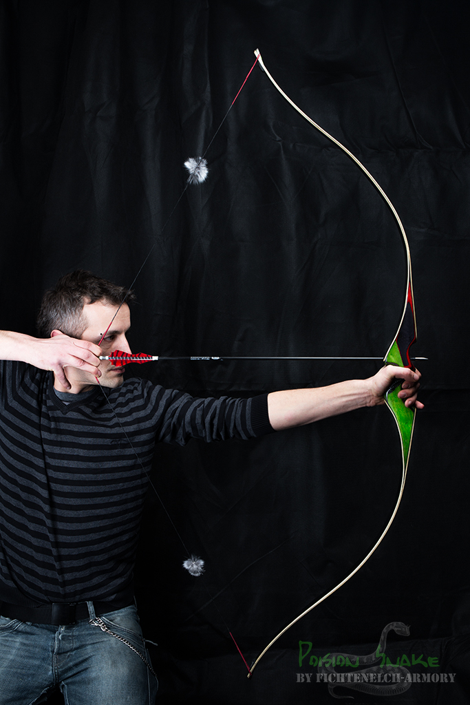 Also der Bogen ist der erste Bogen der aus dem Prototyp "FA-AC1" entstanden ist. Diesmal ohne komischen "Überrollbügel"...dafür etwas stärker und bunter plus ein kleines Gimmick :-) Das Carbonlaminat am Rücken hab ich selbst gemacht und muss sagen es funktioniert richtig gut. Die Auszugdiagramm verläuft , genau wie beim Prototyp, fast linear und der Bogen wirft 310 Grain Pfeile mit 190 fps. Handshock hat er keinen und er lässt sich ...ich sags jetzt einfach...geil schießen! Ich habe am Bauch auch noch eine Art "kleinen Tip" verbaut um die Sehne daran zu hindern nach dem Schuss auf dem Wurfarm zu landen. Das ganze habe ich aus Carbon gemacht so das zusätzliche Gewicht an den Enden kaum auffällt ...dadurch und durch die Sehnendämpfer ist der Bogen richtig schön leise und Eidechsenflink.