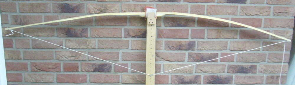 Also, der derzeitige Stand ist: Griffstück ist aufgeleimt (aus dem "Rest" des Staves), der Bogen ist insgesamt 3mal gedämpft; jetzt sieht´s so aus, als liefe die Sehne endlich gut durch den Griff.