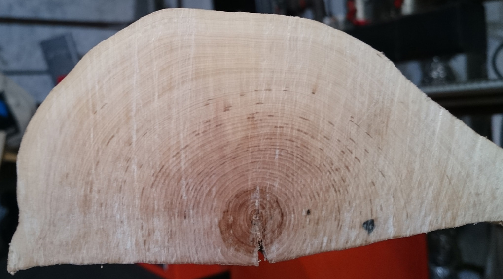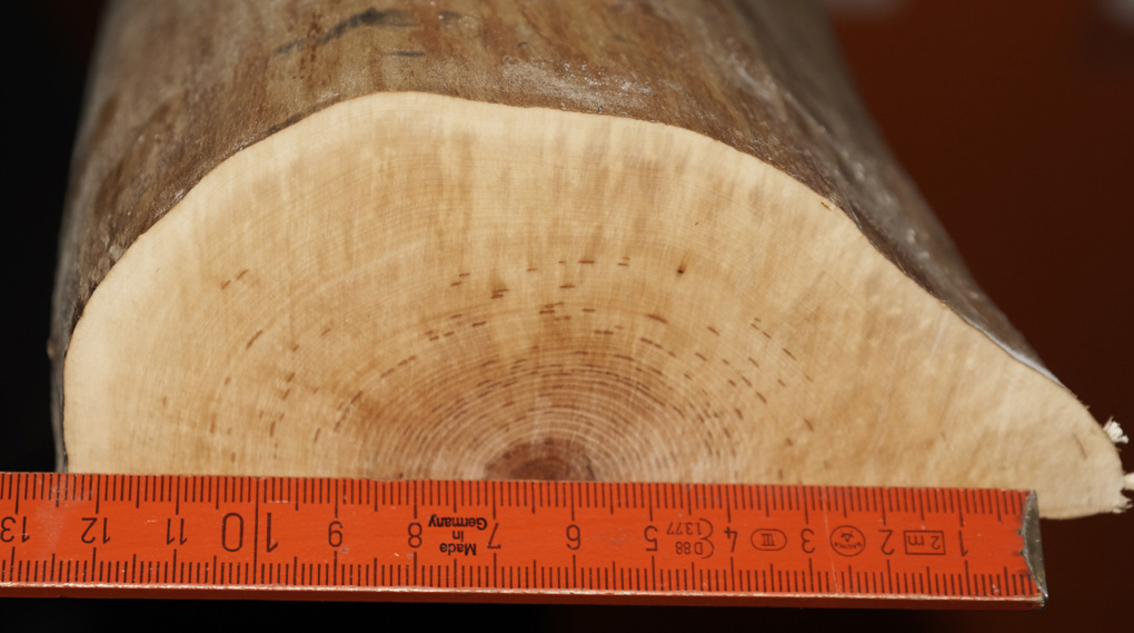 Was die Trennung Splint - Kern angeht: Ich sehe da durchaus eine Trennlinie: Relativ weit außen ist ein etwas dickerer heller abgesetzter Ring. Das dürfte der innerste Splintring sein.