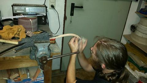 Zirwicklungen aus Ulmenbast sind aufgebracht und alles mal grob geschliffen.