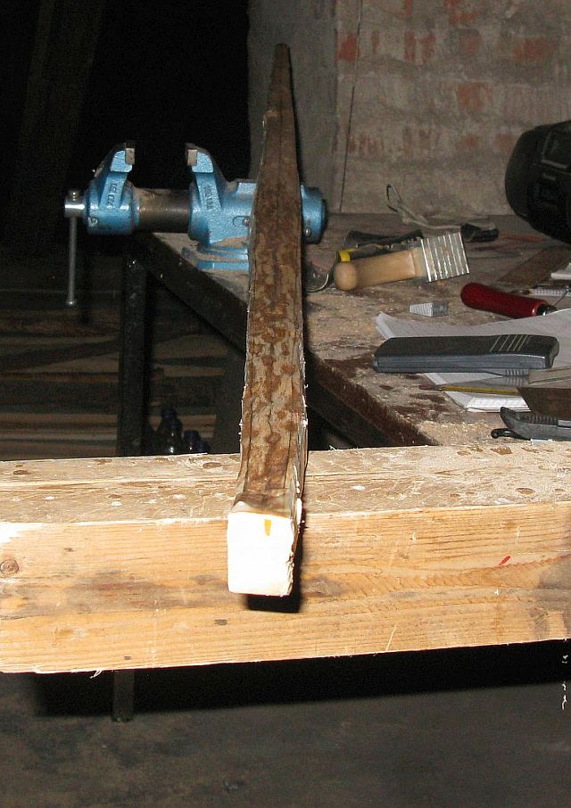 Die Holzspitze muss dünner werden und etwas kürzer, so dass man mehr Platz hat für eine schöne Form...