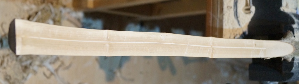 DasHolz ist ziemlich hart lässt sich aber bestens hobeln und mit dem Ziehmesser bearbeiten, das entrinden war recht einfach den Bast habe ich für den test Wurfarm nicht komplett entfernt.