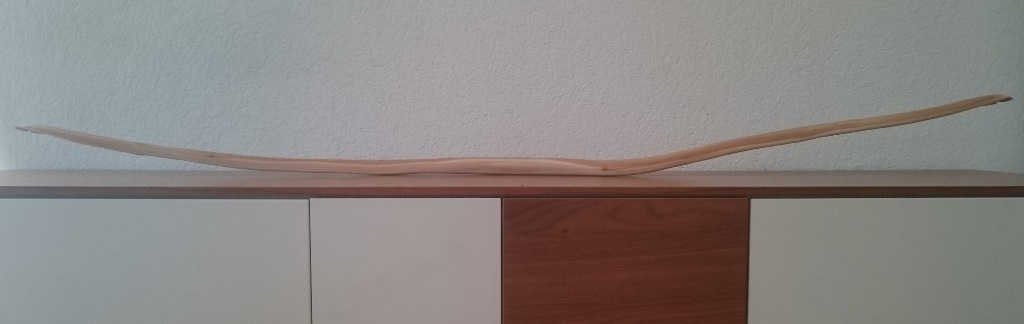 Da ich mich nun doch in die Werkstatt verirrt habe und mir einen nicht ganz einfachen Stave ausgesucht hatte, würde ich gerne eure Meinung dazu hören. Die Eibe um die es hier geht, habe ich vor 2 Jahren auf der Grüngutsammelstelle gefunden. Sie ist „etwas“ Snaky und im oberen Wurfarm mit einem ordentlichen deflexen Knick. Oben wie auch unten einen Ast und im Moment ist sie 640g sowie Sehnenkerbe zu Sehnenkerbe 161 cm lang. Bei 28“ stehen gerade 50 # auf der Waage. Zum besseren Verständnis natürlich Bilder, mit der Hoffnung auf ein paar eurer geschätzten Meinungen.