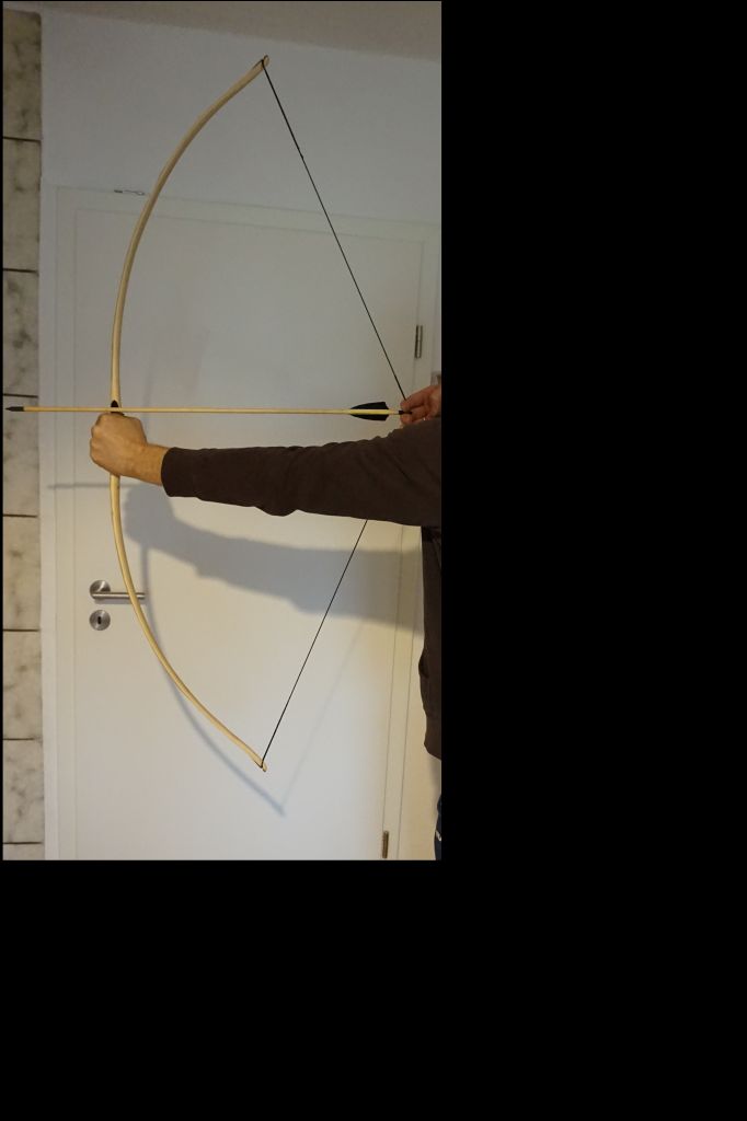 mein Patenkind wünschte sich zu Weihnachten ein Schlangenbogen.Ihr Wunsch war mir Befehl ;D . Ich hatte noch ein Stück Holunder, der von einem anderen Projekt übrig geblieben ist in passender länge.Der Bogen lässt sich gut schießen und 18# konnte die gerade so ziehen.