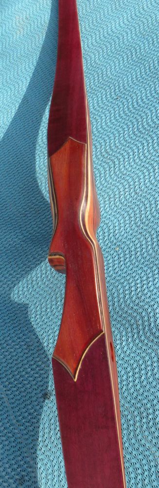 Der Hauptbiegebereich könnte in der Mitte des Wurfarms liegen. In der .pdf-Datei steht ja drin, direkt ab den Fades trapezförmig verjüngt. Wären die ersten 10 cm parallel belassen worden, hätte sich optisch ein homogenes Biegeverhalten ergeben und technisch nicht der extrem dauerbelastete Minibiegebereich hinter den Fades. Dank dem Glas wird aber nichts passieren. Ein reiner Holzbogen hingegen hätte sich wahrscheinlich schon empfohlen und wäre in die ewigen Jagdgründe entfleucht.