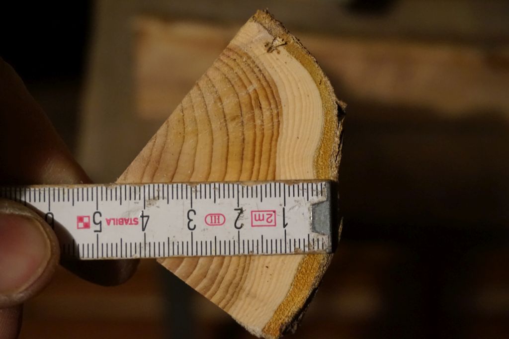 Zu über 90% ist die Holzqualität auf der deflexen Seite bei Holler besser als auf der reflexen Seite, hier könnte es wegen dem Totast aber anders sein, das sieht man aber erst nach dem Auftrennen. Totäste bringen meist auch Fäulnis in den Hauptstamm.