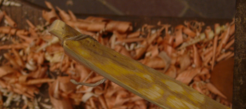 die beiden Faulbaumrohlinge sind halbwegs gerade geblieben. Habe sie noch ein bsschen runtergearbeitet und schonmal etwas gebogen... der Bruchtest-Streifen war nicht sehr vielversprechend - ist schon bei wenig Biegung über den Rücken geplatzt.