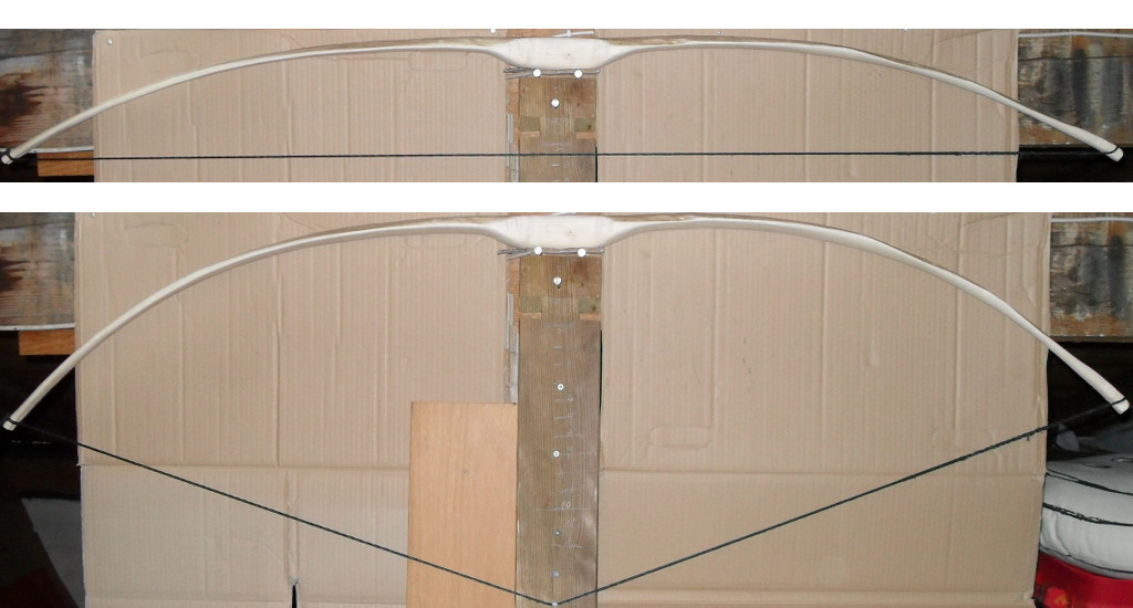schiessen ist gar nicht so einfach (geht schon an damit einen geeigneten Platz zu finden), hab ein paar Schüsse (20) gemach, macht ziemlich Spass und fühlt sich angenehmer als Nr.1 an. Ich hab Vollauszugsfotos gemacht, dort hat man gesehen dass der (jetzt) obere WA nach den Fadeouts noch ziemlich steif war, dann hab ich nochmal ordentlich die Ziehklinge drübergezogen, jetzt ist es der obere WA und ich finde es ist deutlich besser geworden, allerdings bin ich jetzt bei 46#@30'' (was aber auch irgendwie angenehm ist). Noch eine Frage am Rande: Mir dreht manchmal der Pfeil nach aussen von Bogen und Knöchel weg beim Auszug, ist das ein Technikfehler oder eine Baufehler??