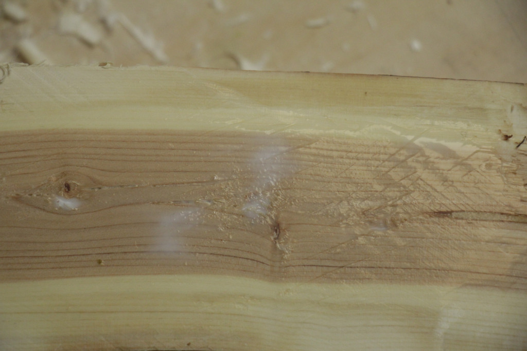 Das trocknen war nach 2x großzügigem ölen des entrindeten Rückens mit OSMO Topoil (ähnlich Hartwachsöl derselben Firma, bildet evtl. eine dickere Schicht auf der Oberfläche als das gleichnamige Produkt von Kreidezeit, da hattest du ja von Problemen berichtet) bisher recht problemlos (16-18 Grad, ca. 40% Luftfeuchte), bis auf die eine Stelle. Da sind die Risse im Griff auf der Bauchseite auch nur sehr klein und nach der Versiegelung nicht mehr weiter gerissen. Wenn der später auch noch zickig ist, lasse ich ihn lieber mal im Keller, besser ein Bogen nach dem SAP wie kein Bogen (Gewichtabnahme aktuell << 1% pro Tag).