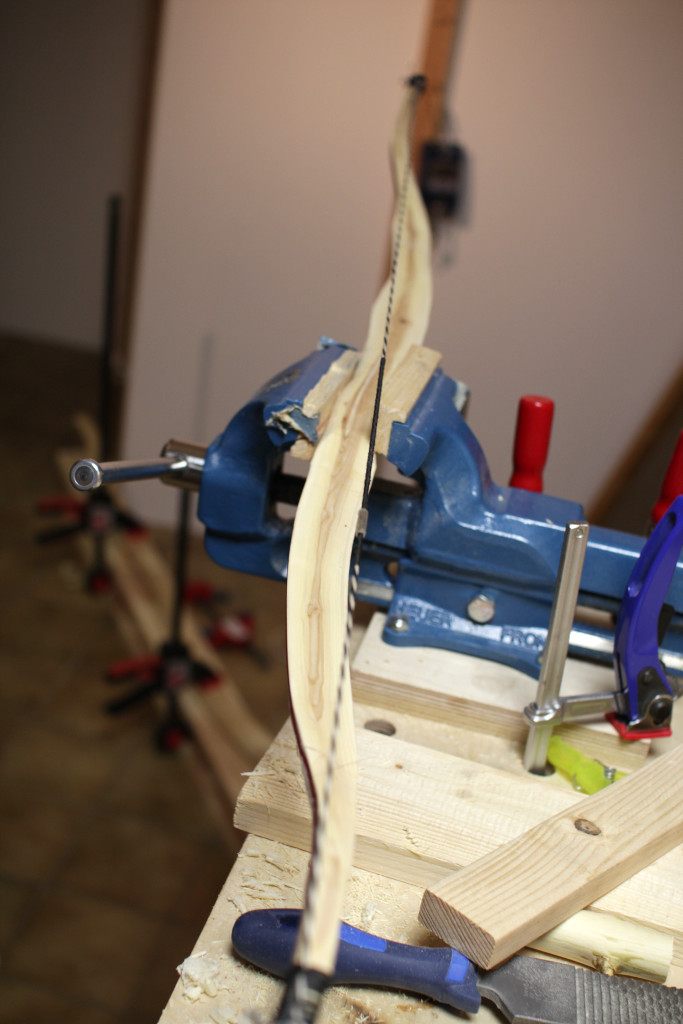 Hab die Sehnenlage durch biegen eines Tips etwas korrigiert, bin gespannt ob das hält, die letzten 10 cm sind nur 1.2 bis 1 cm breit. jetzt muss ich schnell tillern