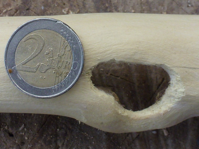 Erst nur Stecknadelkopf groß wurde das Loch beim rausfriemeln des bröseligen Totholzes immer größer.