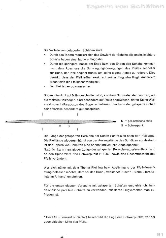 Allgemein machen getapperte Pfeilschäfte viel zusätzliche Arbeit (außer Naturschäfte) und bringen dafür recht wenig, nur wenige Schützen haben einen echten Vorteil davon, wenn die Pfeile um 3%-5% besser sind und 5-10m weiter fliegen.
