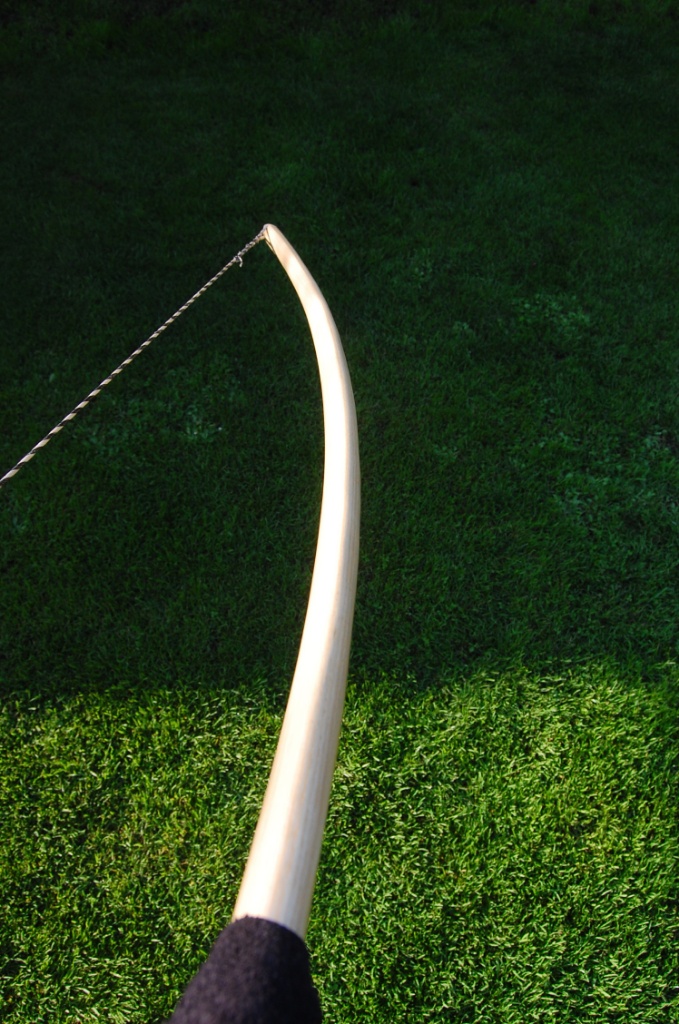 Ich würde mal sagen gelungen. Der Bogen hat ein für einen Eschen Stabbogen ein ordentliches Zuggewicht, wenn das dann auch noch ohne Knitterfalten gelungen ist, hast Du beim Tiller keine Fehler gemacht.