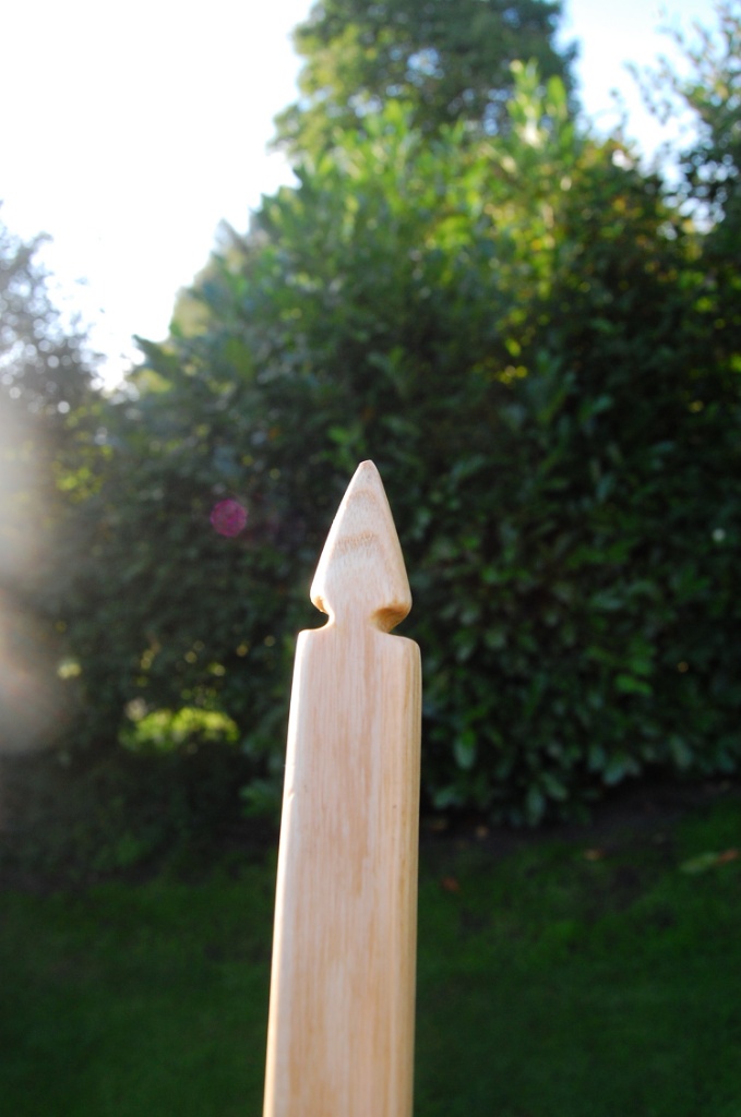 Also hab ich den Stave mit einer Handkreissäge in zwei Hälften geteilt und einen Flachbogen und diesen Stabbogen gebaut. War zwar etwas riskant, hätte ja auch in die Hose gehen können und ich hätte gar keinen Bogen daraus gebaut. Glück gehabt.