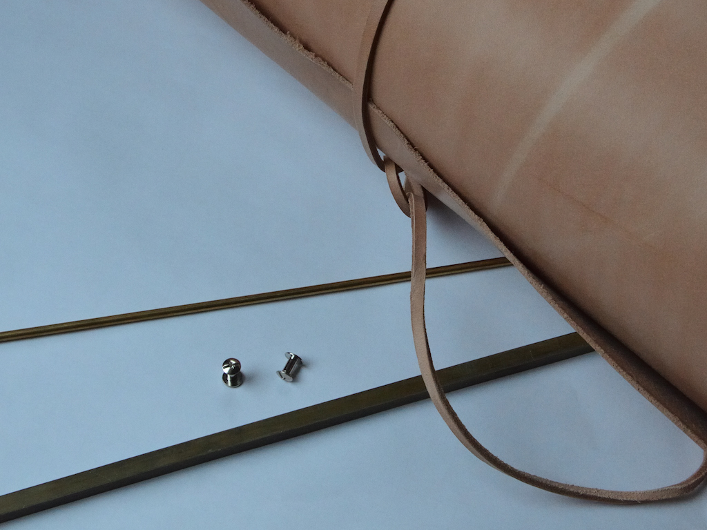 Leder, eine Neusilber Vierkantstange, Messing Rundmaterial und zwei Buchschrauben (Farbe, Faden, Kleber etc. lasse ich mal weg).