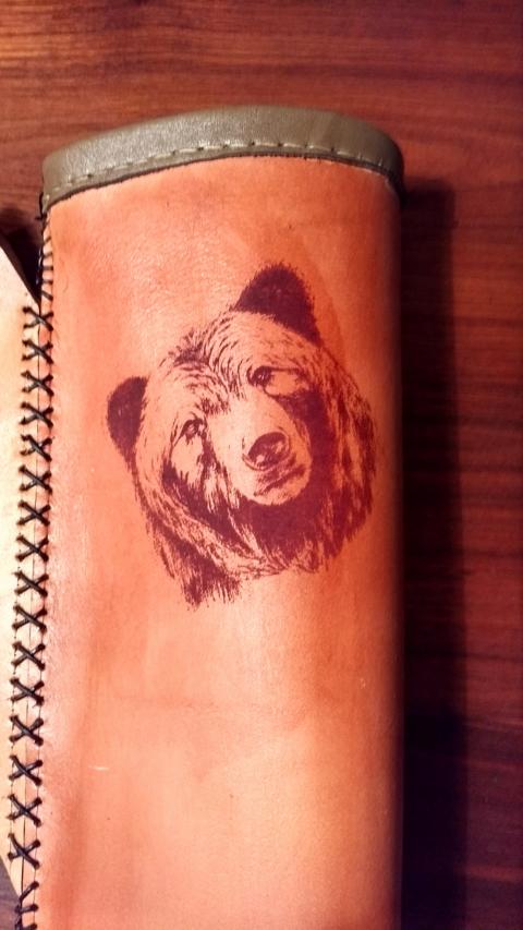 Besonderheit gegenüber den sehr perfekten anderen Lederpräsentationen ist, der Bär auf dem Köcher ist