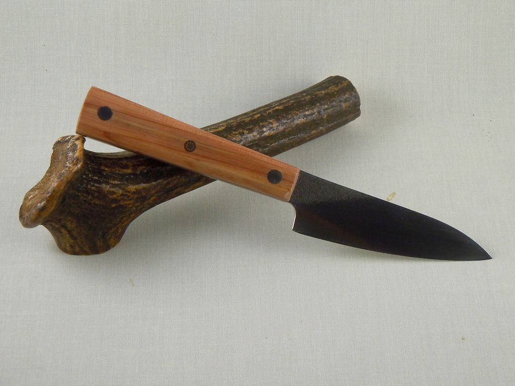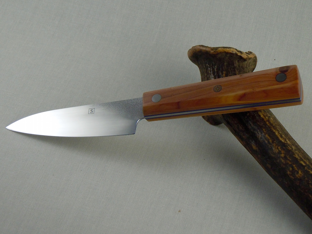 Ich schiebe gleich noch eines hinterher (#49). Meine Frau wollte ein kleines Messer für die Küche haben und jetzt bin ich endlich mal dazu gekommen eines zu machen.