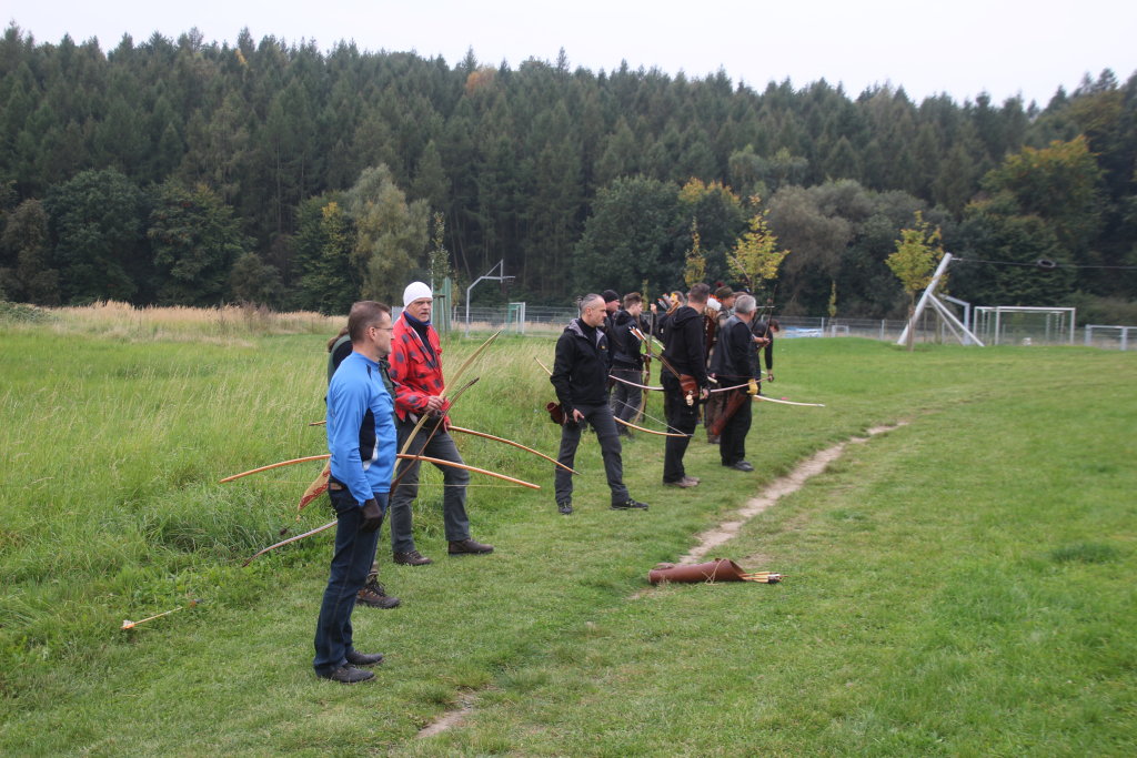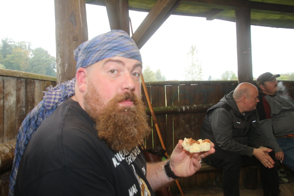 Nicht mein prägenster Eindruck aus dem diesjährigen Friedlandtreffen, aber einer, den ich nie vergessen werde, ist Norman, der zwei Stunden nach geplantem Abfahrtszeitpunkt unter Zwirns und meinem hektischen zum-Auto-Gewinke nuuur noch eben paar Pfeile über den Chroni schicken mußte (seiner frisch gezwirbelten Fastflight am neuen Spielzeug wegen - ok, 6fps Zuwachs, nich übel).
