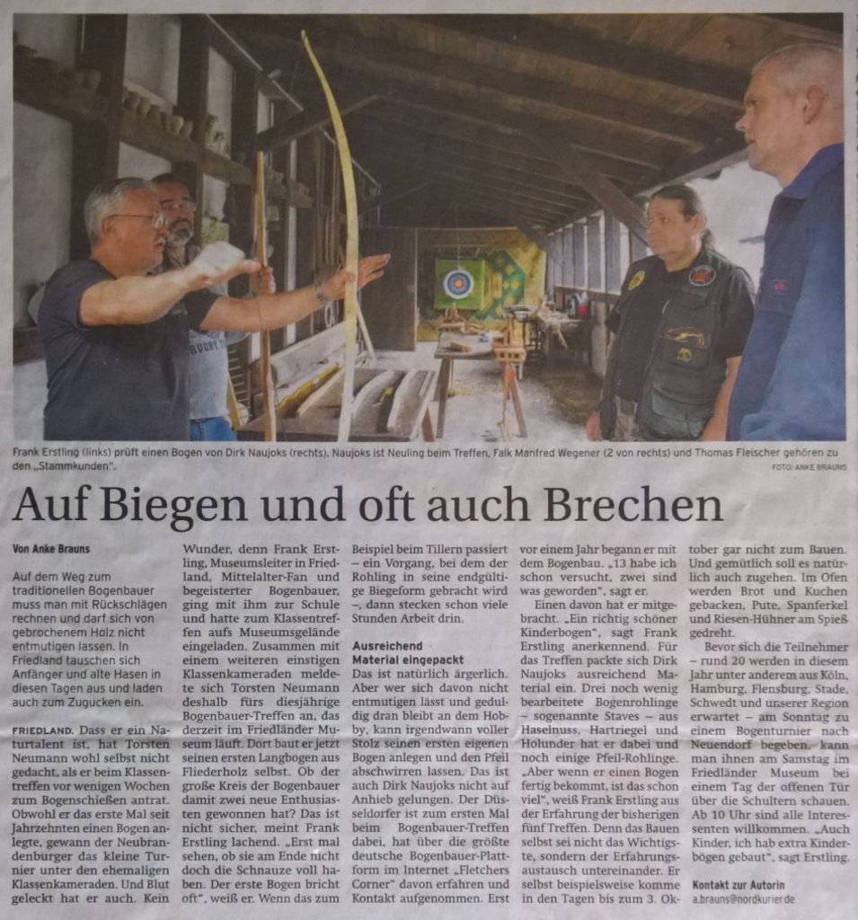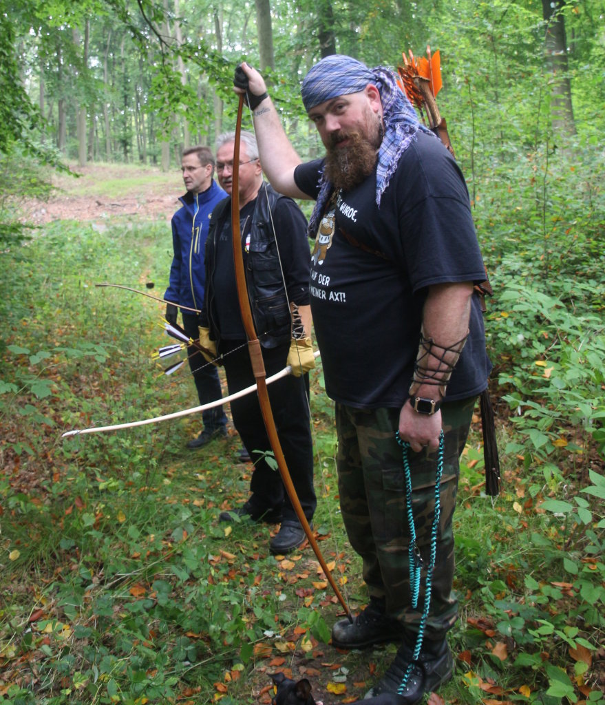 Nicht mein prägenster Eindruck aus dem diesjährigen Friedlandtreffen, aber einer, den ich nie vergessen werde, ist Norman, der zwei Stunden nach geplantem Abfahrtszeitpunkt unter Zwirns und meinem hektischen zum-Auto-Gewinke nuuur noch eben paar Pfeile über den Chroni schicken mußte (seiner frisch gezwirbelten Fastflight am neuen Spielzeug wegen - ok, 6fps Zuwachs, nich übel).