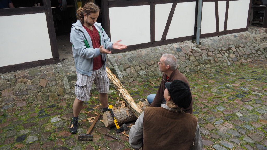 "Geist des BBT, gib uns am heutigen Tag den Durchblick, die ruhige Hand und die Cojones, diese Robinie, die sich in der tat als nicht ganz ohne herausstellen sollte, zu spalten, aufdaß Du ein Wohlgefallen daran haben mögest."