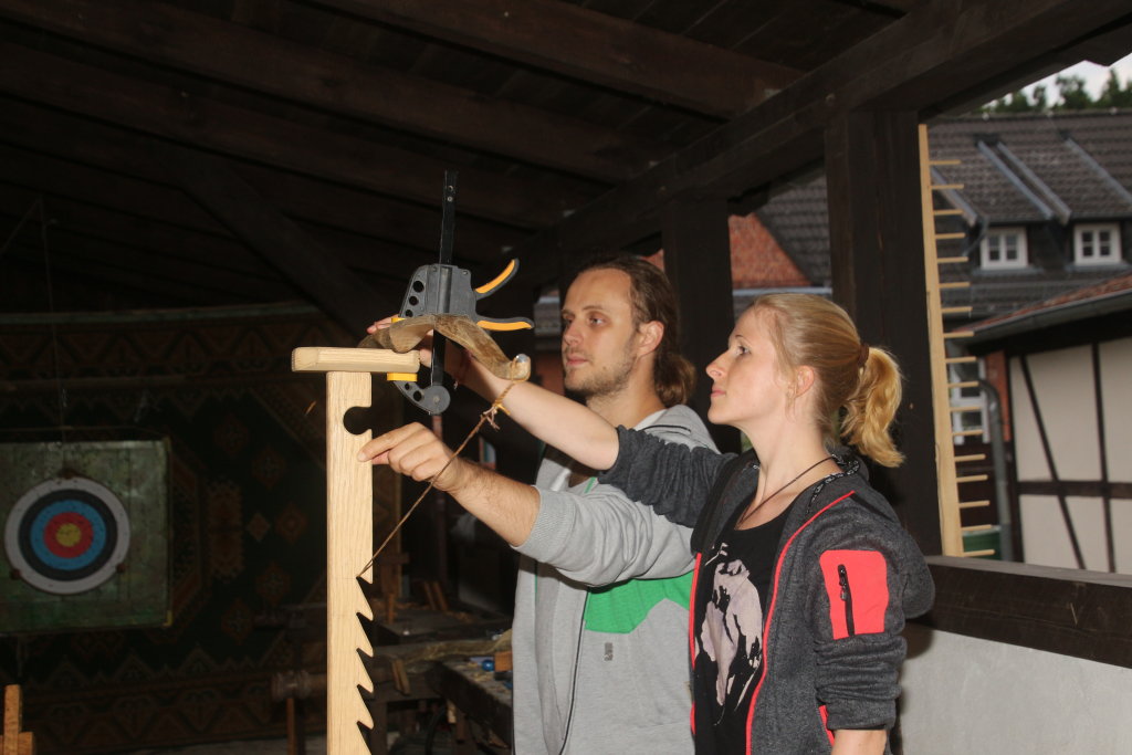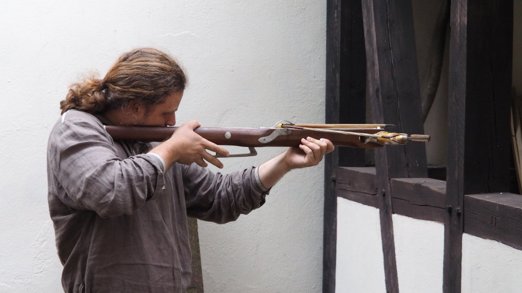 Helge die große Pavesearmbrust hat 300# und die Jagdarmbrust hat 180#