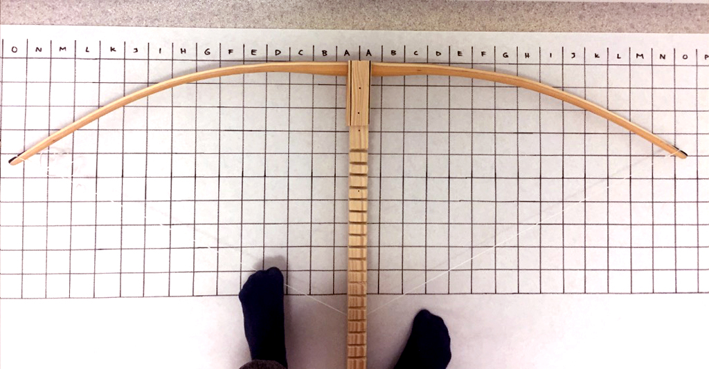 Der Bogen biegt nur griffnah. Du bist gut unterwegs jetzt musst Du einfach beidseits an die Wurfarmenden ran.
