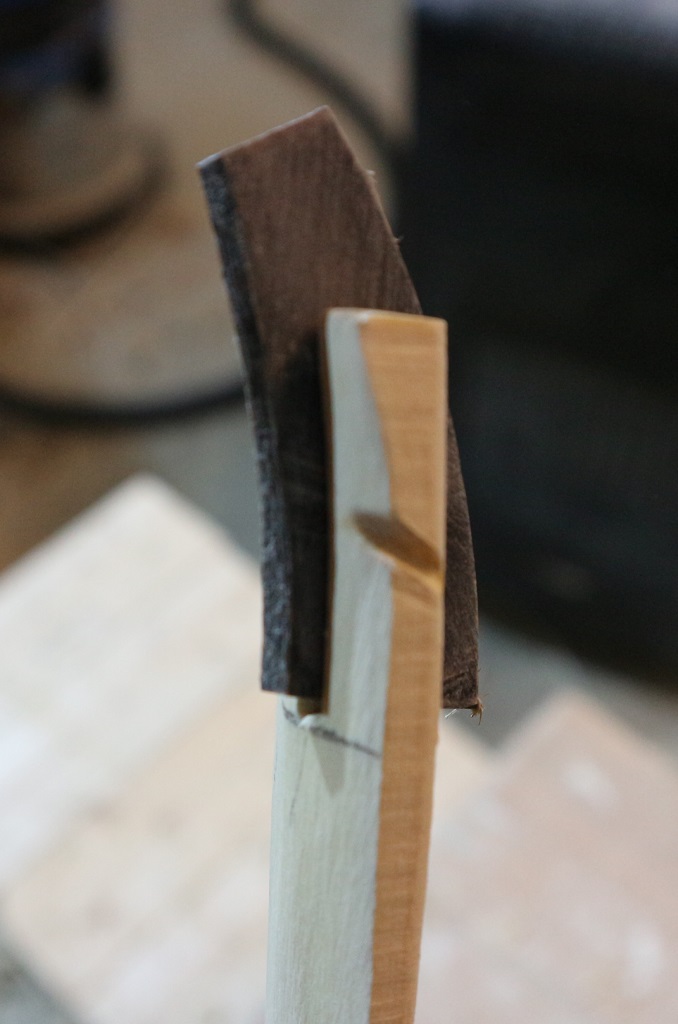 Zuerst habe ich den griffnahen Wurfarmhälften des geraden Vorbogens (Vorbogen2) nacheinander ein wenig Reflex verpasst. Das ging super. Dann habe ich doch noch ein Pflaster für das angebrochene Tip von Robinie 2 aus einem Reststück vom gleichen Stämmchen geschnitzt und nach 30min. im Dampf gebogen.