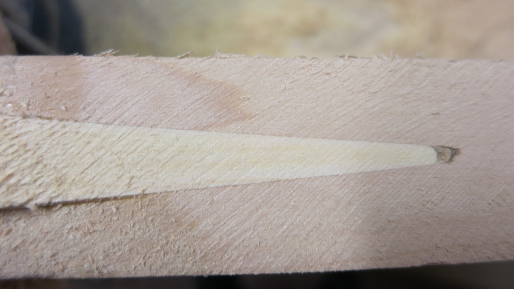 Diesmal sah es direkt nach dem Abnehmen der Zwingen so aus: Habe mich daher hoffnungsvoll an die Formgebung gemacht: Da bin ich etwas unsicher: ist der Übergang zu steil? Sollte ich den allmählicher gestalten, i.w. in den Kasan hinein noch etwas Dicke abnehmen? Hier ist immerhin bei meinem Erstling das Holz gerissen.