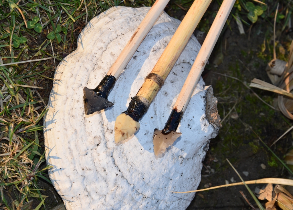 Auf speziellen Turnieren der Meisterschaften der prähistorischen Jagdwaffen habe ich schon einmal mit Silexspitzen geschossen. Da schiesst man auf Scheiben aus Schaumplatten. Die Scheiben werden aber sehr in Mitleidenschaft gezogen, das Problem ist aber, dass der Aufschlag das Birkenpech erschüttert und weich macht und ich nach einigen Zielen die Spitze verloren habe. Nun sie blieb in der Scheibe stecken. Aus diesem Grund habe ich andere gedrehte Spitzen aus Geweihspitzen. Die lassen sich ohne weiteres wieder herausziehen. Schäfte aus Schösslingen oder Spaltlingen und die Befiederung sind da aber Pflicht und selbsverständlich.