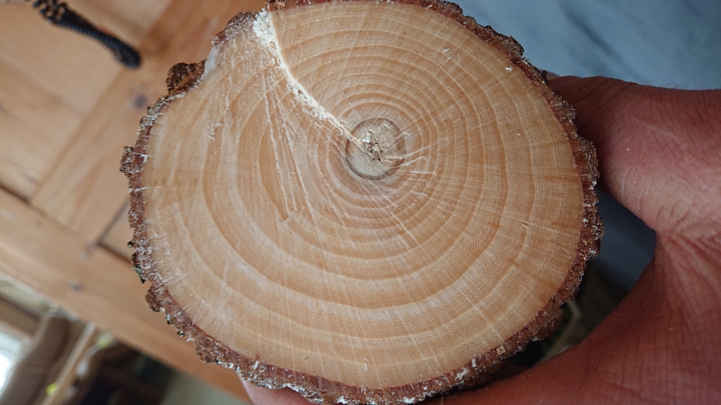 Wenn du den Stamm teilst aufpassen, dass eine Haelfte die duennen Ringe und die andere die dicken hat, sonst werden die beim Trocknen oder spaetestens beim Ausschneiden krumm.