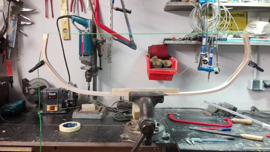 der Rahmen lag ja schon vorbereitet da, das heißt es ist alles im Zeitraffer dargestellt. Die letzten Fotos zeigen den aktuellen Stand. Der Bogen wird 118cm NtN und soll 55#@28'' haben. Der 90# Bogen soll meiner werden(ich will einen realen Kriegsbogen haben)und bekommt einen eigenen Thread. Momentan konzentriere ich mich auf diesen hier und meinen Skythen ;)