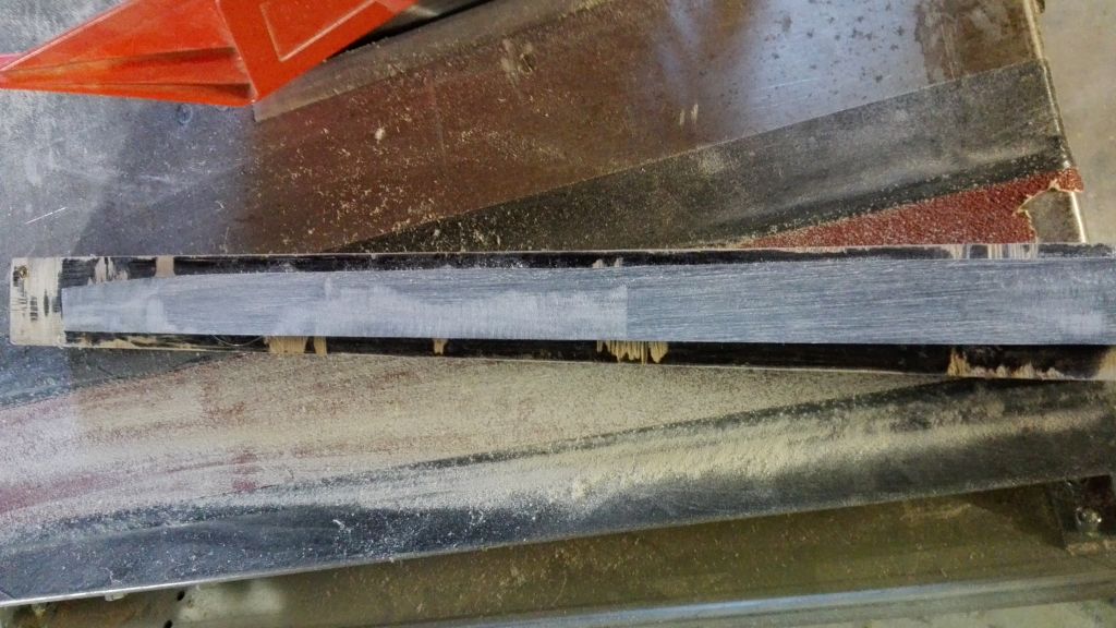 Die Hornstreifen vom aktuellen Bogen habe ich mit Heißkleber auf ein Brett geklebt, um ihn nun planschleifen zu können.