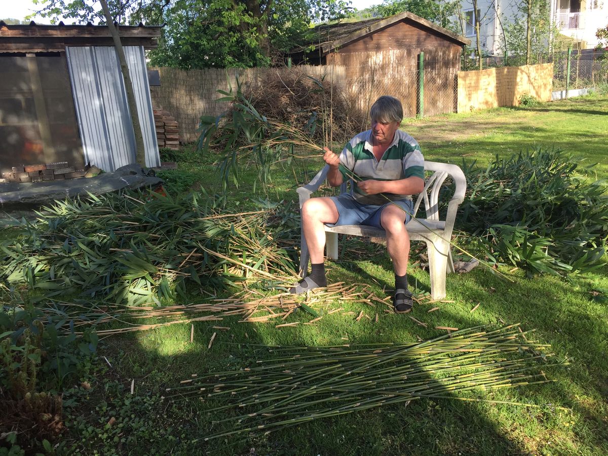 Ich berufe mich hier mal auf den Tipp von Jo. Er erntet die Stängel ja, wenn sie gelb geworden sind.