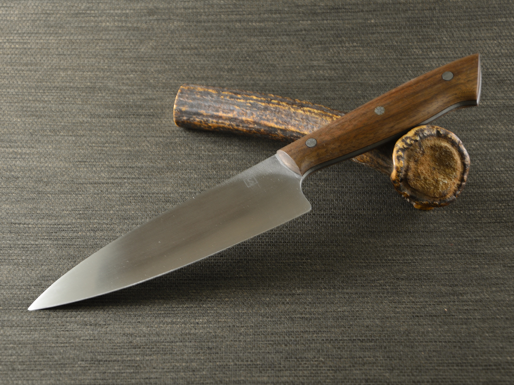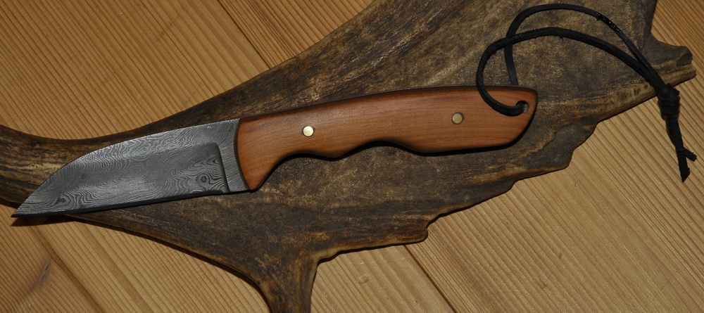 Sehr ansprechend finde ich die Grifform und ich halte sie auch für ergonomisch gut, prima auch, dass die untere Ecke der Klinge rund geschliffen ist, das minimiert die Verletzungsgefahr (ich hab mir an einer solchen Ecke schon mal böse wehgetan und in meinem Zorn das Problem dann mit dem Bandschleifer gelöst
