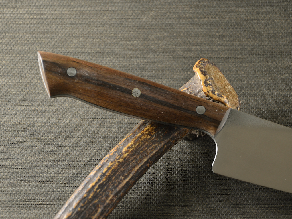 Sehr ansprechend finde ich die Grifform und ich halte sie auch für ergonomisch gut, prima auch, dass die untere Ecke der Klinge rund geschliffen ist, das minimiert die Verletzungsgefahr (ich hab mir an einer solchen Ecke schon mal böse wehgetan und in meinem Zorn das Problem dann mit dem Bandschleifer gelöst