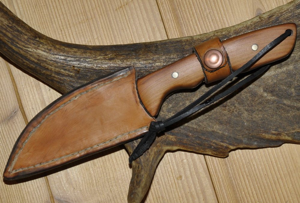 dank meines Wichtels der mir eine Klinge geschenkt hat, musste ich mich auch einmal an einem Messergriff und einer Scheide versuchen, leicht war es nicht aber es hat Spass gemacht.