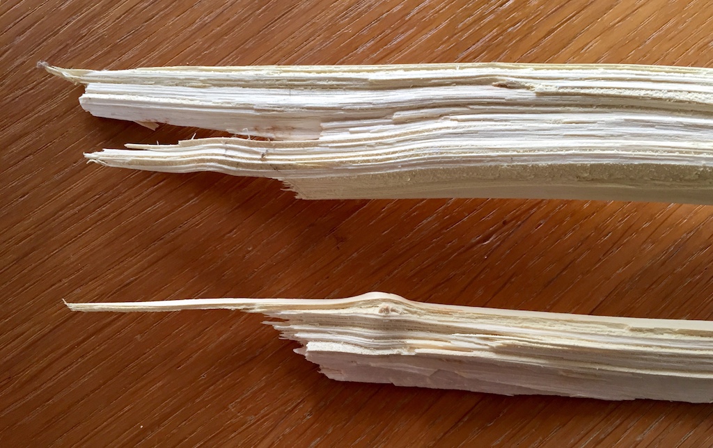 ), versprödet fühlt sich unterm Ziehmesser eben vollkommen anders an als zäh und gut. Und das gelbliche ist ein gutes Indiz, dass etwas nicht OK ist, das haben mir auch schon etliche englische Bogenbauer bestätigt.