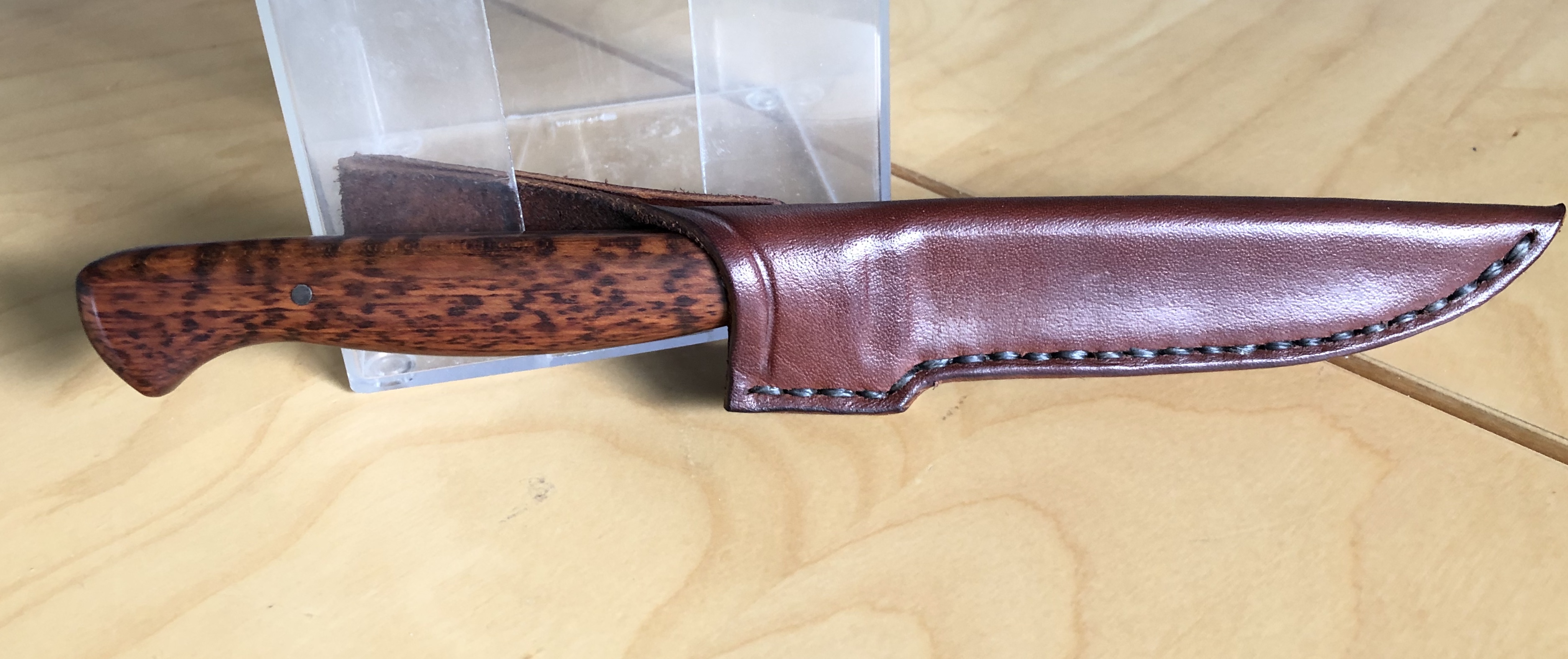 Der Griff ist aus Cocobolo, die Klinge aus SB1 ca. 61 HRC.