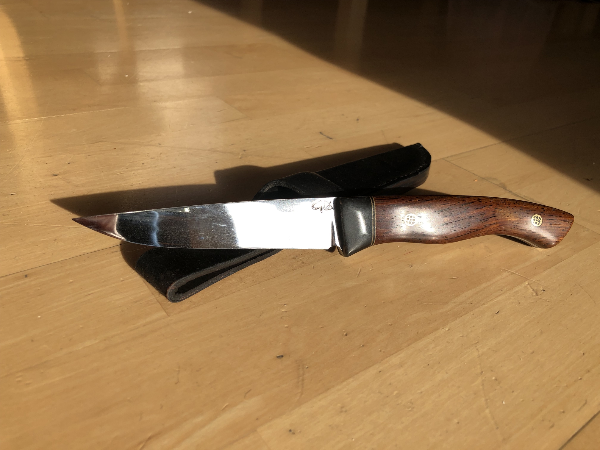 Der Griff ist aus Cocobolo, die Klinge aus SB1 ca. 61 HRC.