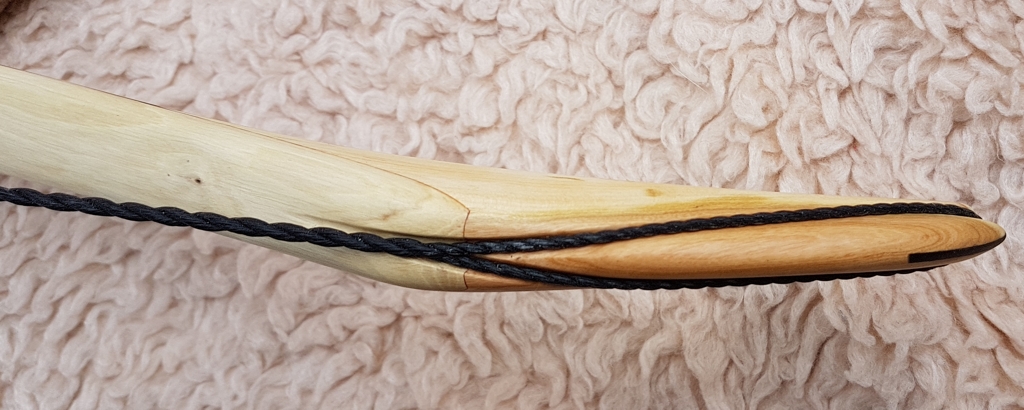 Allerdings nicht so viel, man muss bedenken, dass da ja die Sehnenkerben drin sind und die sind ca. 4-5 mm tief. Und die Sehnenführung funktioniert auf die Art sehr gut.