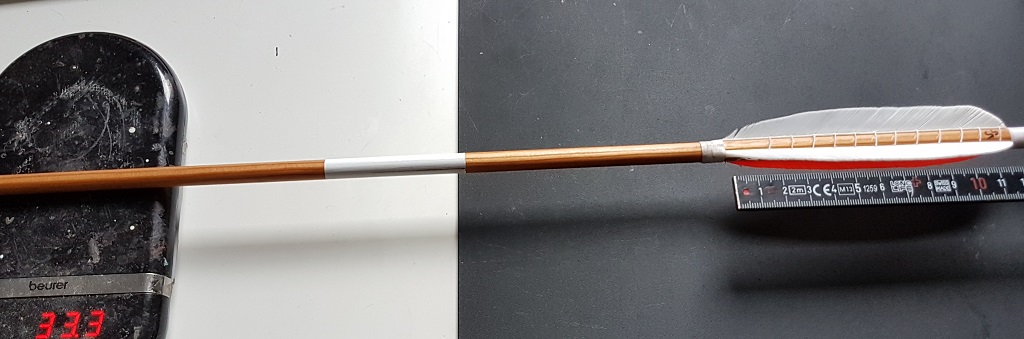 Allerdings nicht so viel, man muss bedenken, dass da ja die Sehnenkerben drin sind und die sind ca. 4-5 mm tief. Und die Sehnenführung funktioniert auf die Art sehr gut.