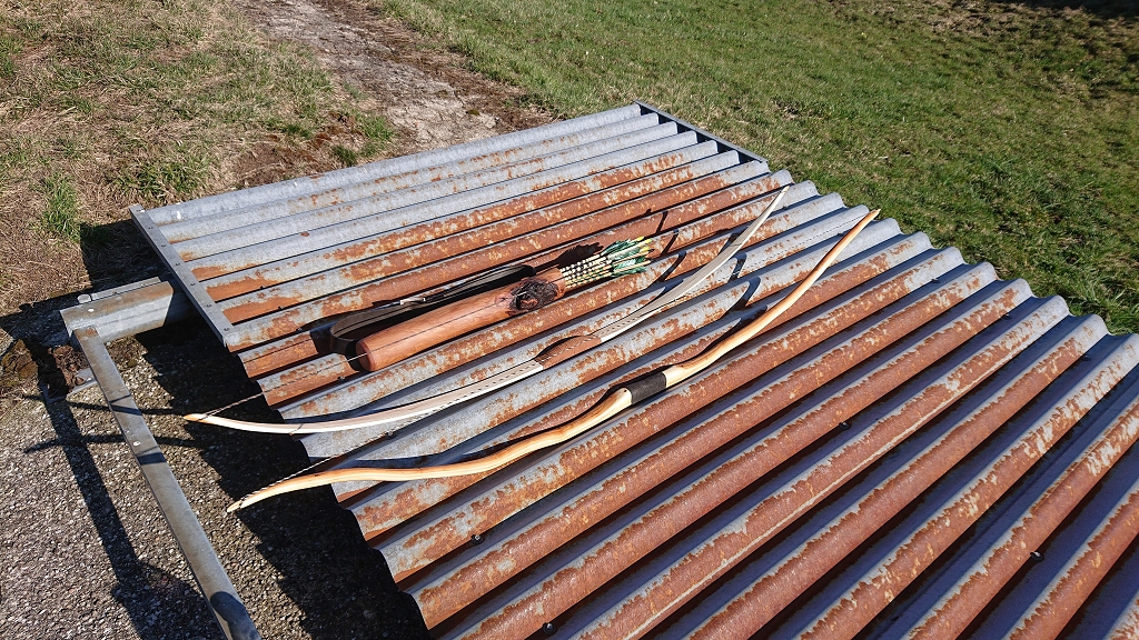 Einschiessen der 2 Bögen (der kleine ist ein echt giftiger Ulmebogen)