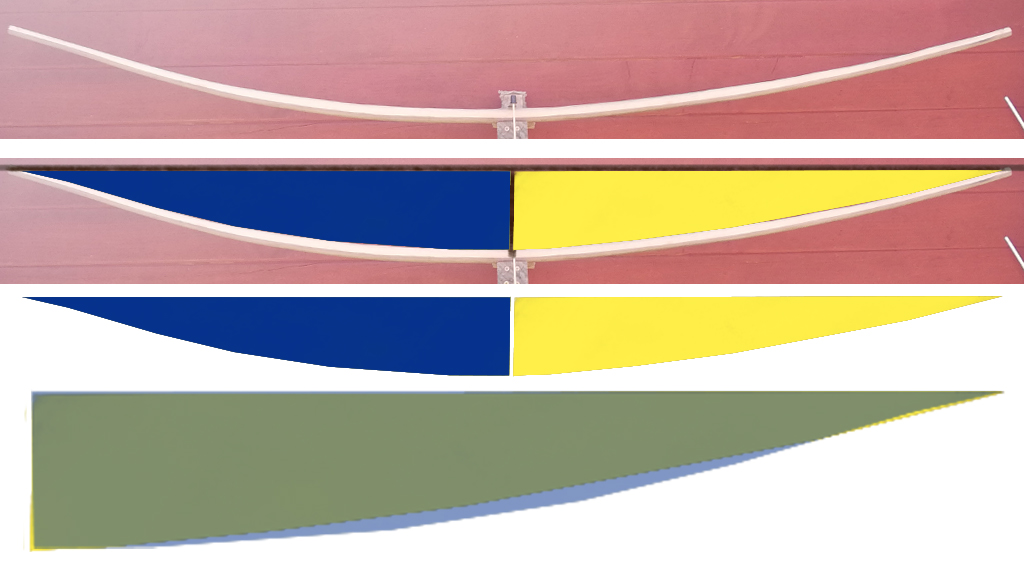 Bei einem Hasel nicht ganz so schlimm. Wenn man sich einen Hasel mit flachen Rückenwölbung( gibt es bereits bei 8cm Durchmesser), der keine Äste oder Verdrehungen hat und als Backing nicht zu dick gewählt wird und nicht zu schmal, dann sollte dies Problemlos möglich sein. Ich habe ihn bei kurzem Biegebreich auf Eibe geklebt und da wäre noch mehr drin gewesen
