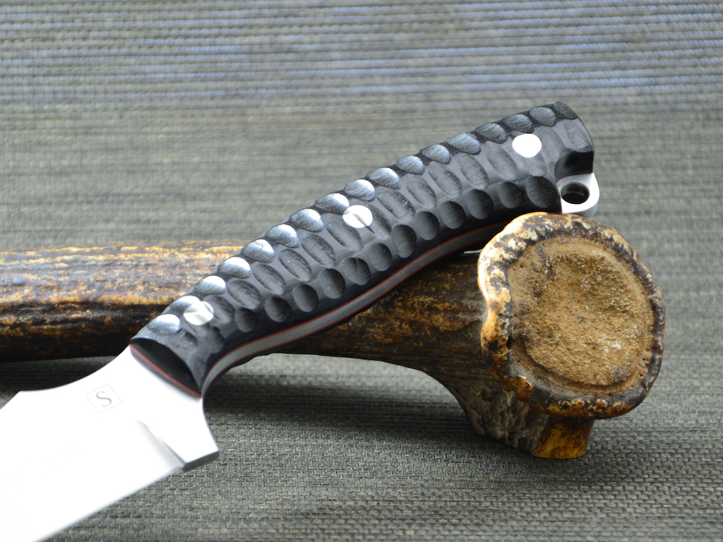 Was habe ich geändert. Der Griff wurde kürzer, dafür die Klinge länger. Die Klinge hat eine falsche Schneide bekommen. Kein Filework und die Fangriemenöse ist nicht versenkt also alles leichter zu reinigen.