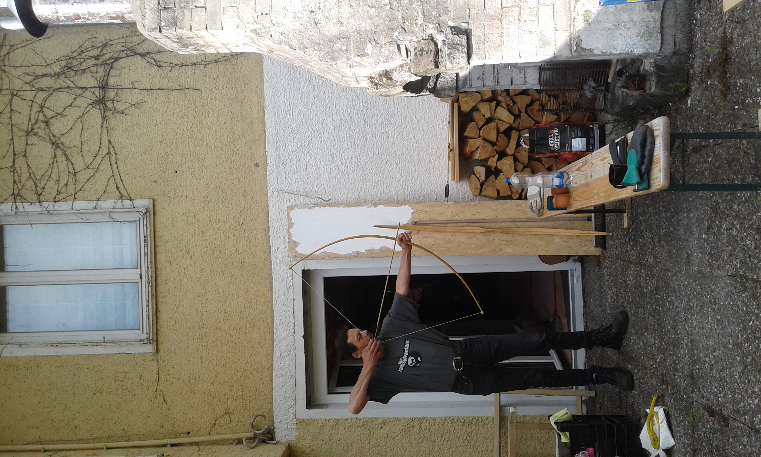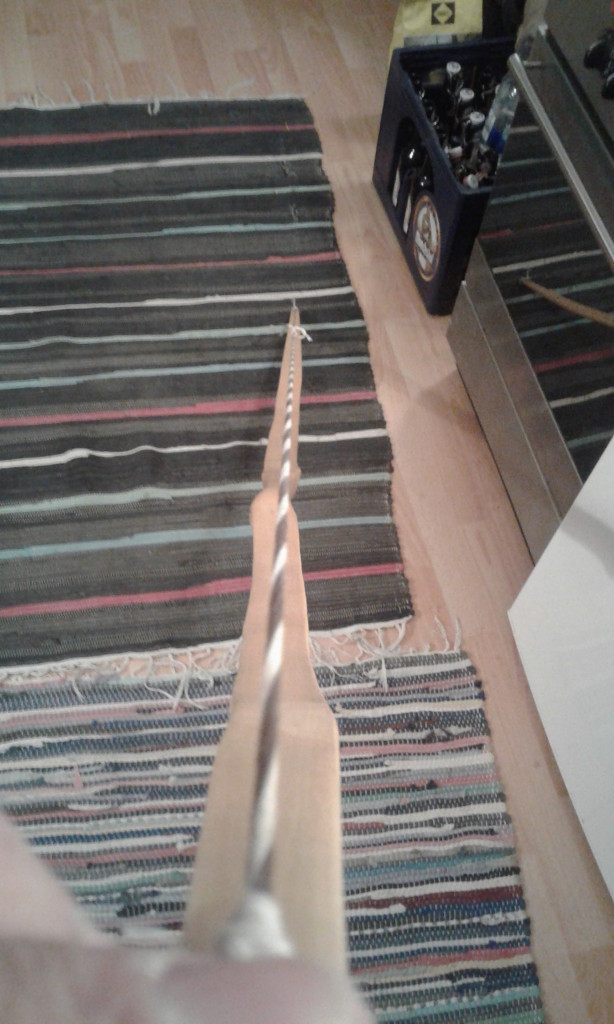 Sehne: Dacron B50 endlos,16-Strang,zweifarbig,Wurstgarnumwicklung, anfangs war ne Hanfsehne drauf, leider nicht das beste Material,guten Hanf zu finden ist manchmal schwer ;-)